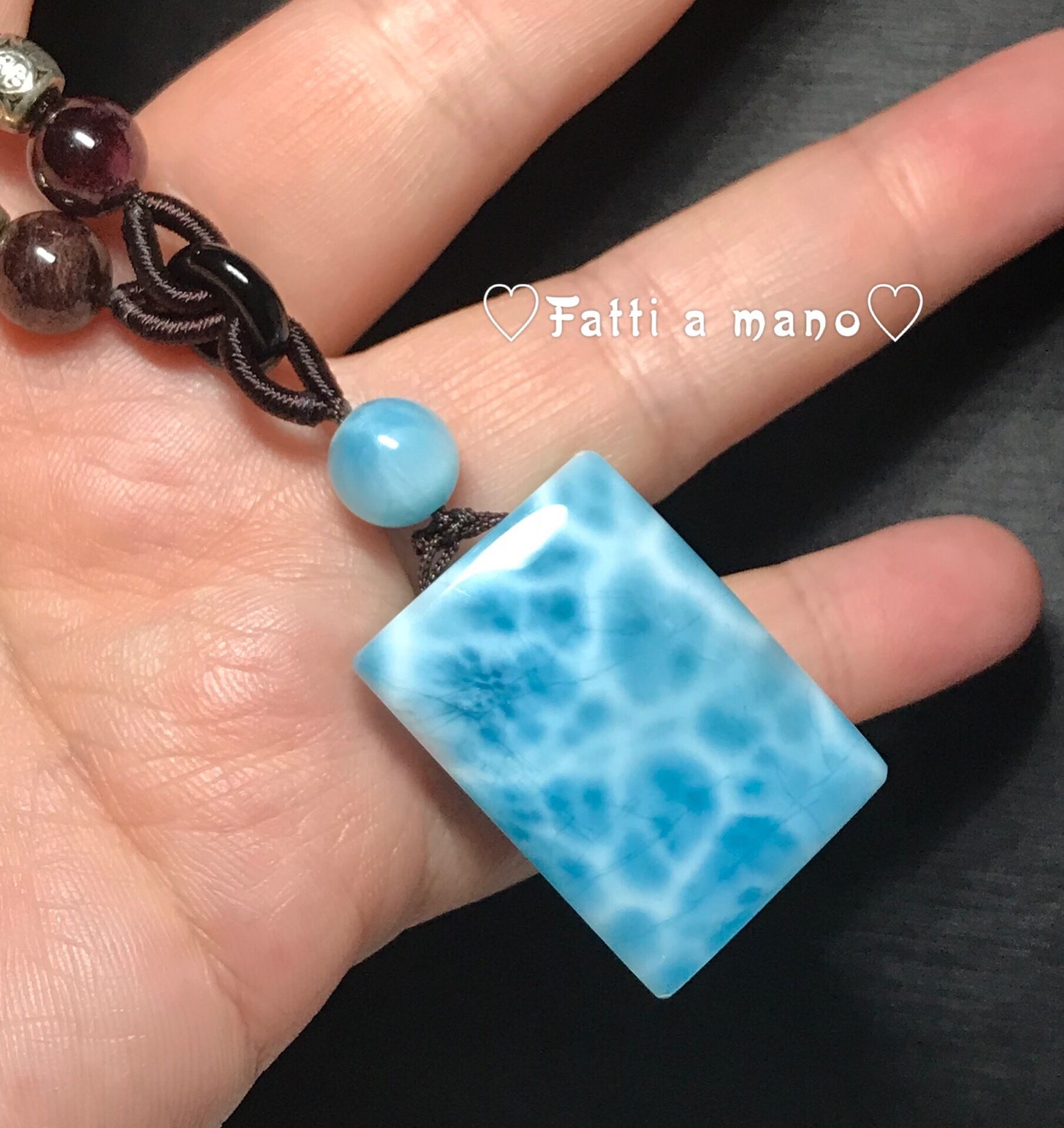 ハイクオリティラリマーペンダントトップ一切金属使用なしです、金属アレルギーの方も安心でご使用することができます。