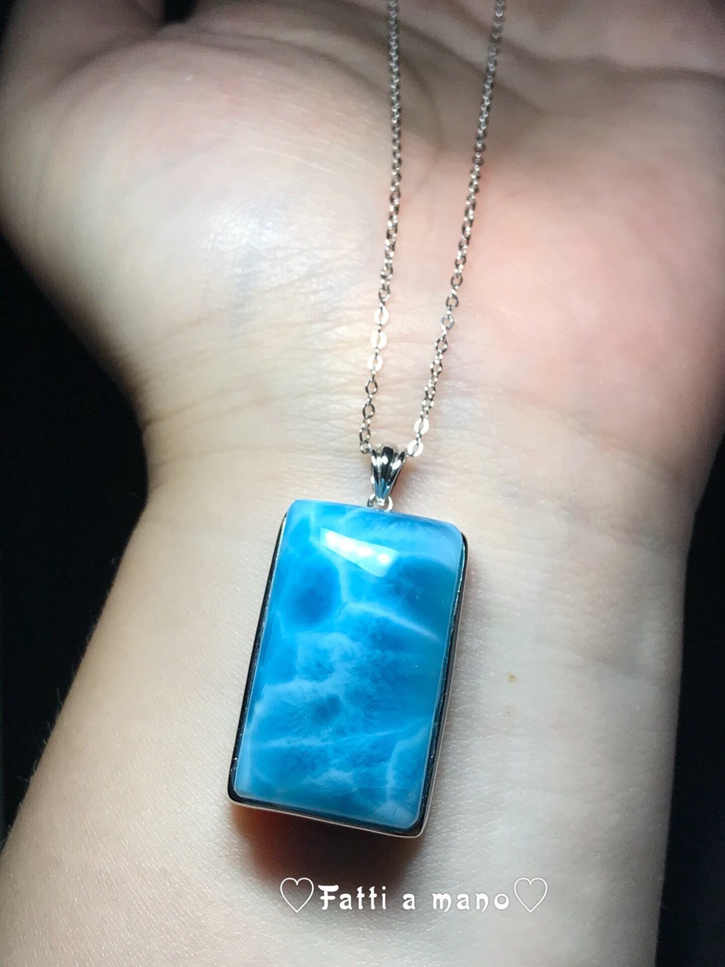※天然ラリマー使用しているため自然のままの色合いになります。人工的に研磨加工以外手加えてません。