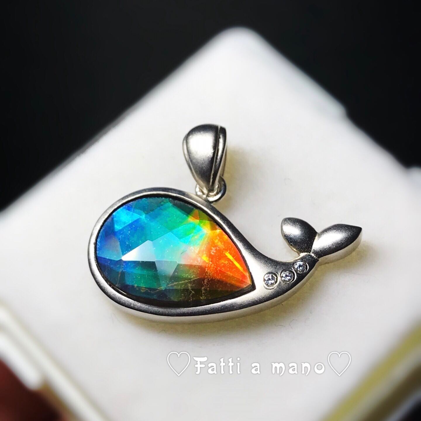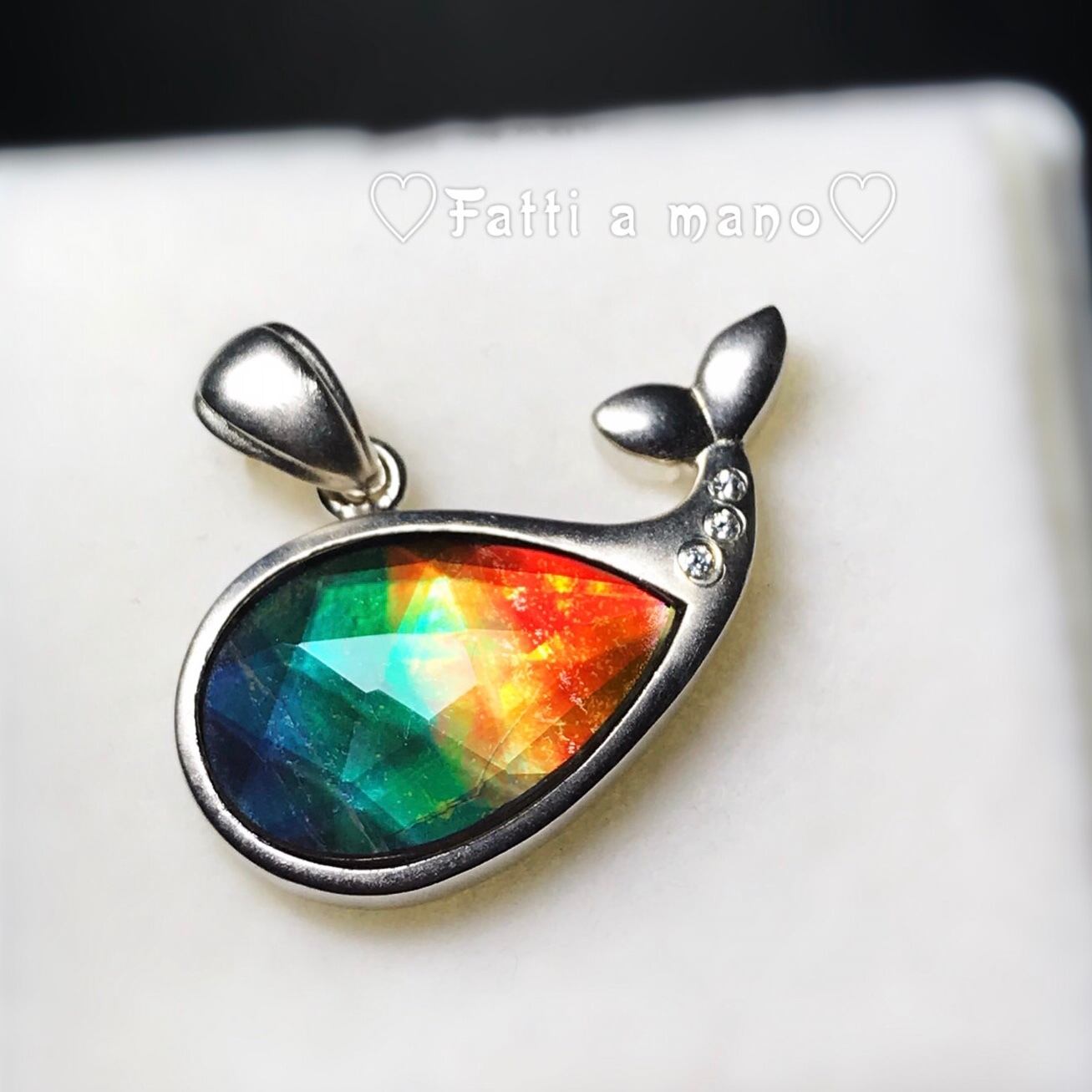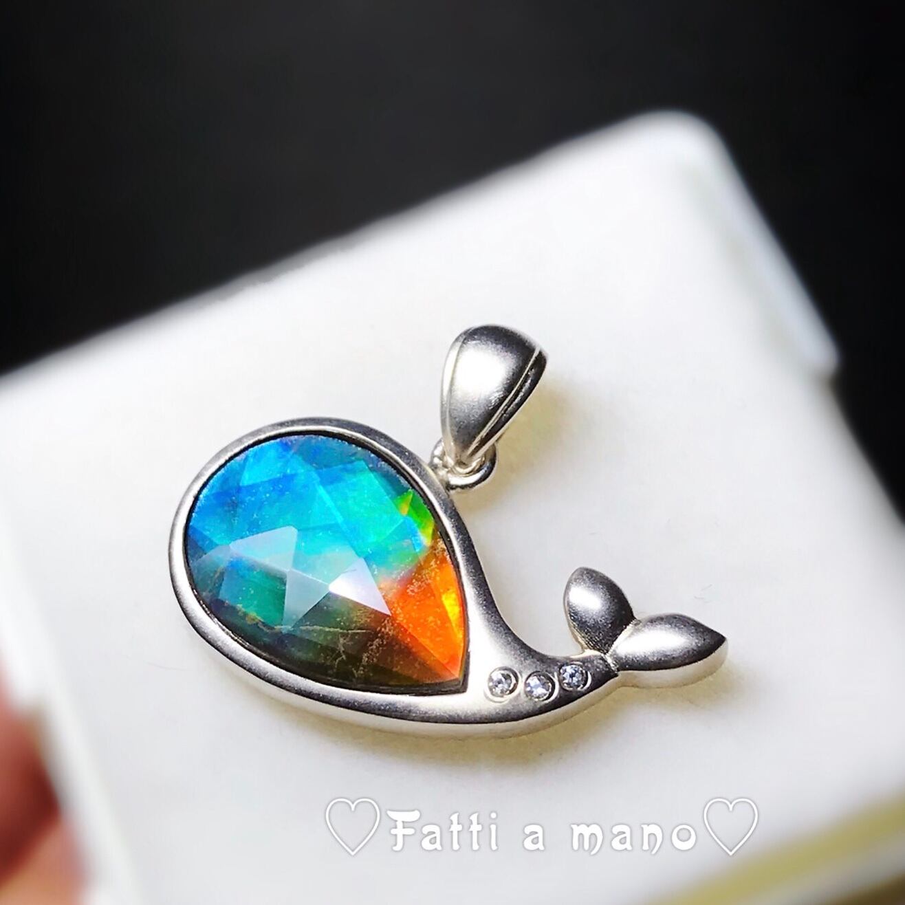 送料無料 AAAグレード虹色 クジラ アンモライト とても珍しいお色 ペンダント 7000万年前から最強の御守り Silver925