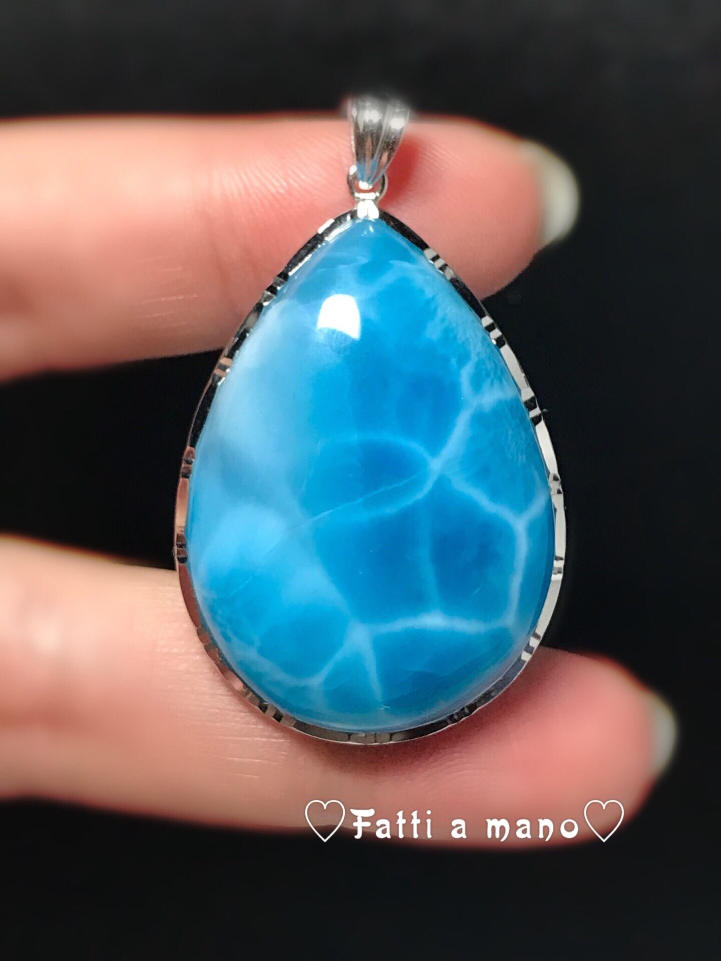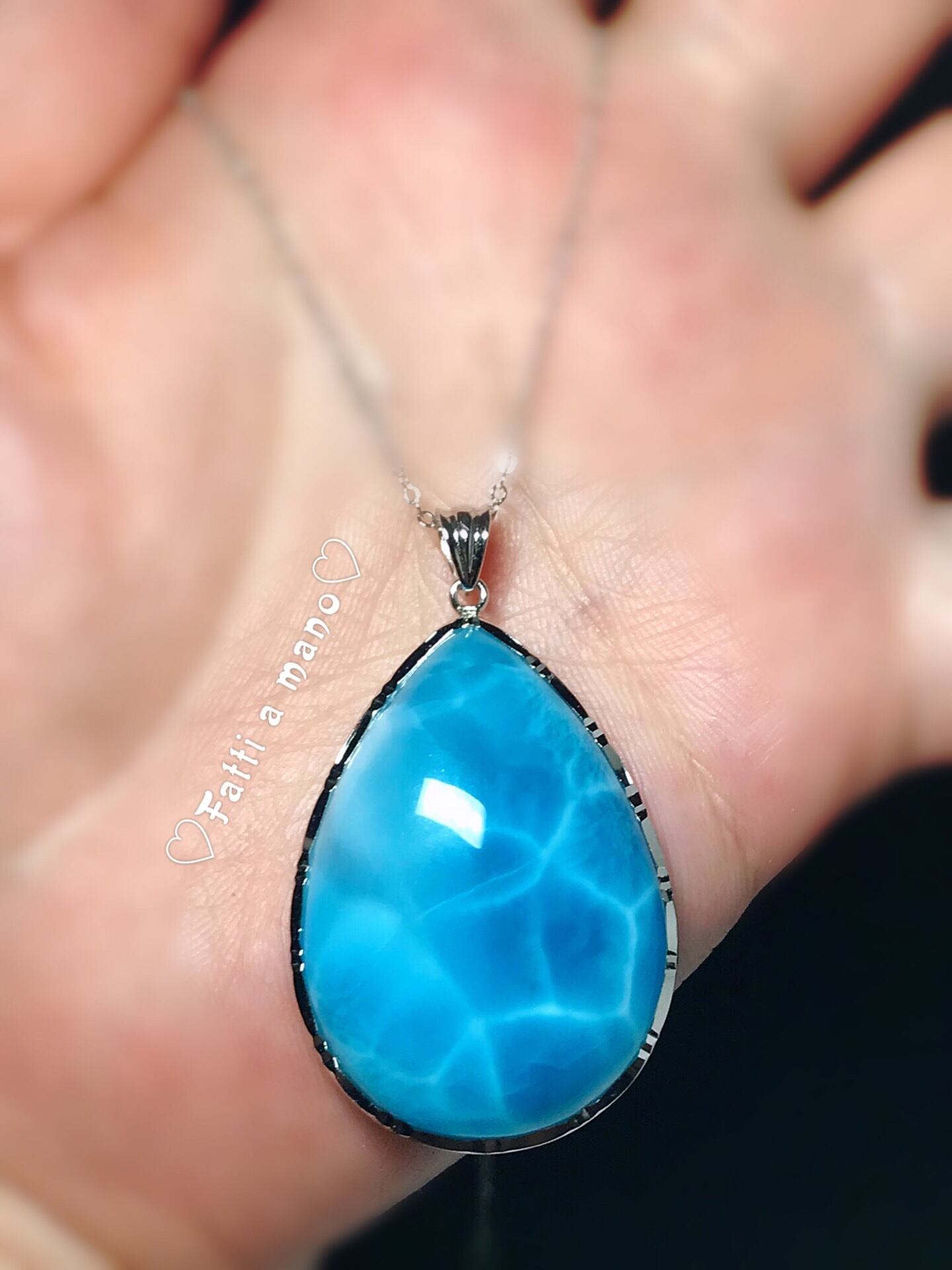 お買い得 トップグレード Bigサイズ とても色濃いラリマーペンダント ネックレス カリビアンブルー Silver925
