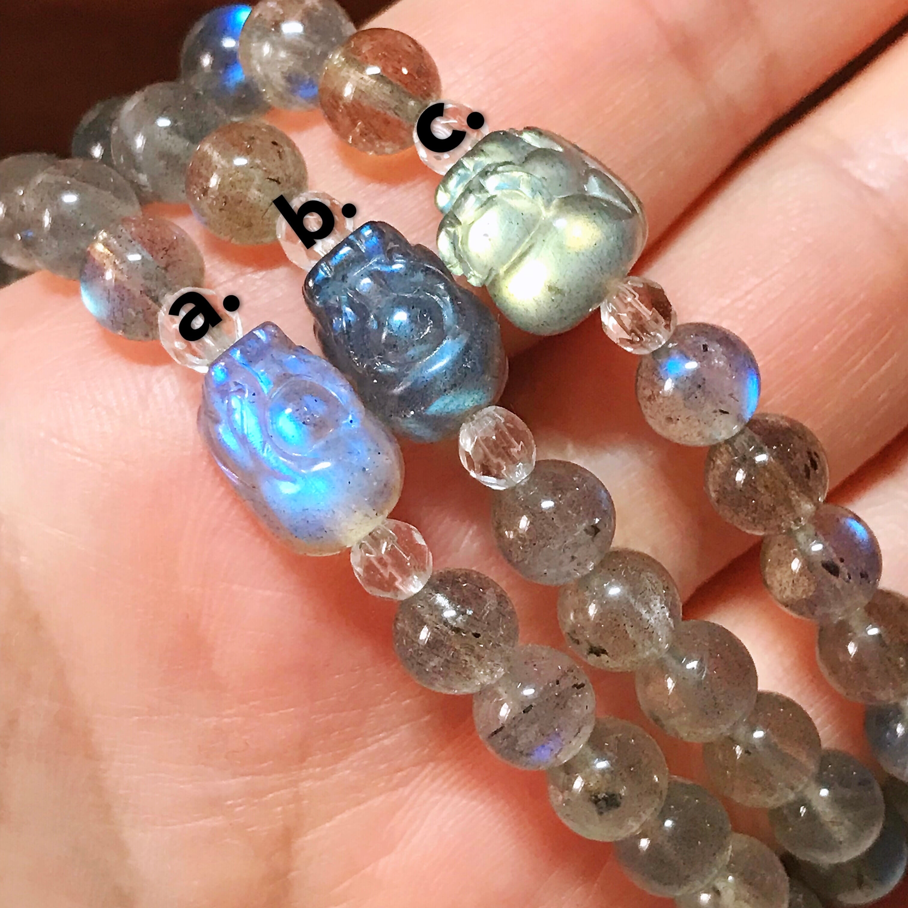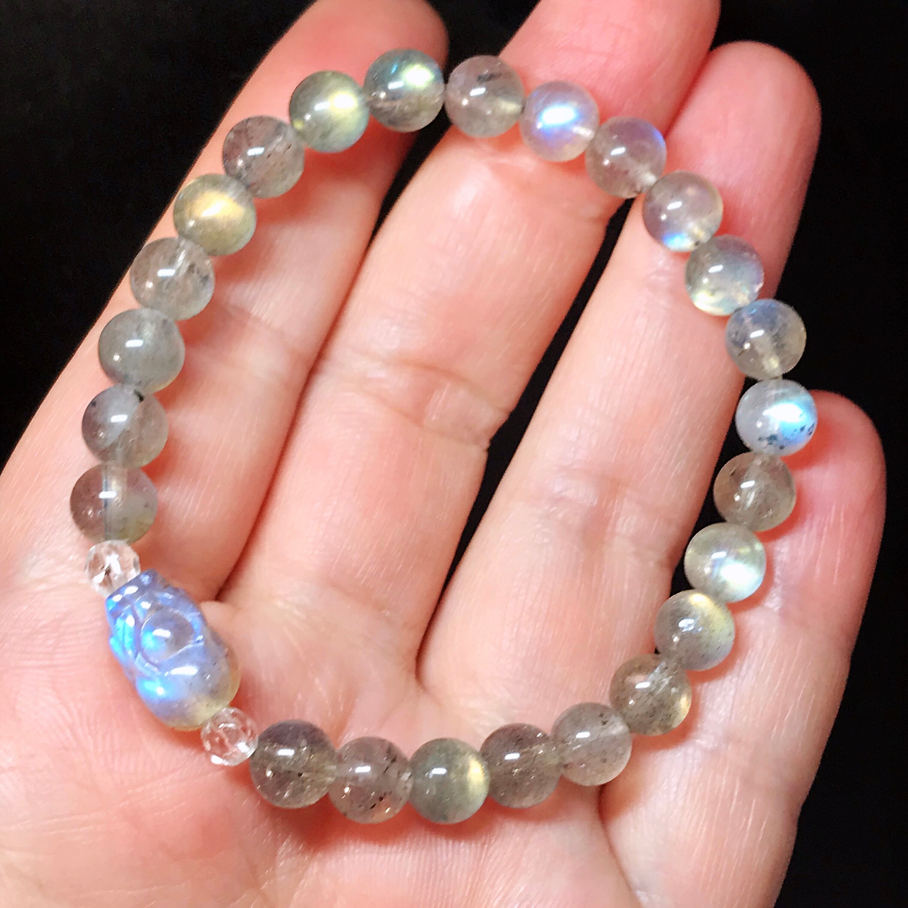 ※ラブラドライトは光源や見る角度によって発色が異なる石ですので、その旨ご了承下さい。撮影には蛍光灯の光を用いています。