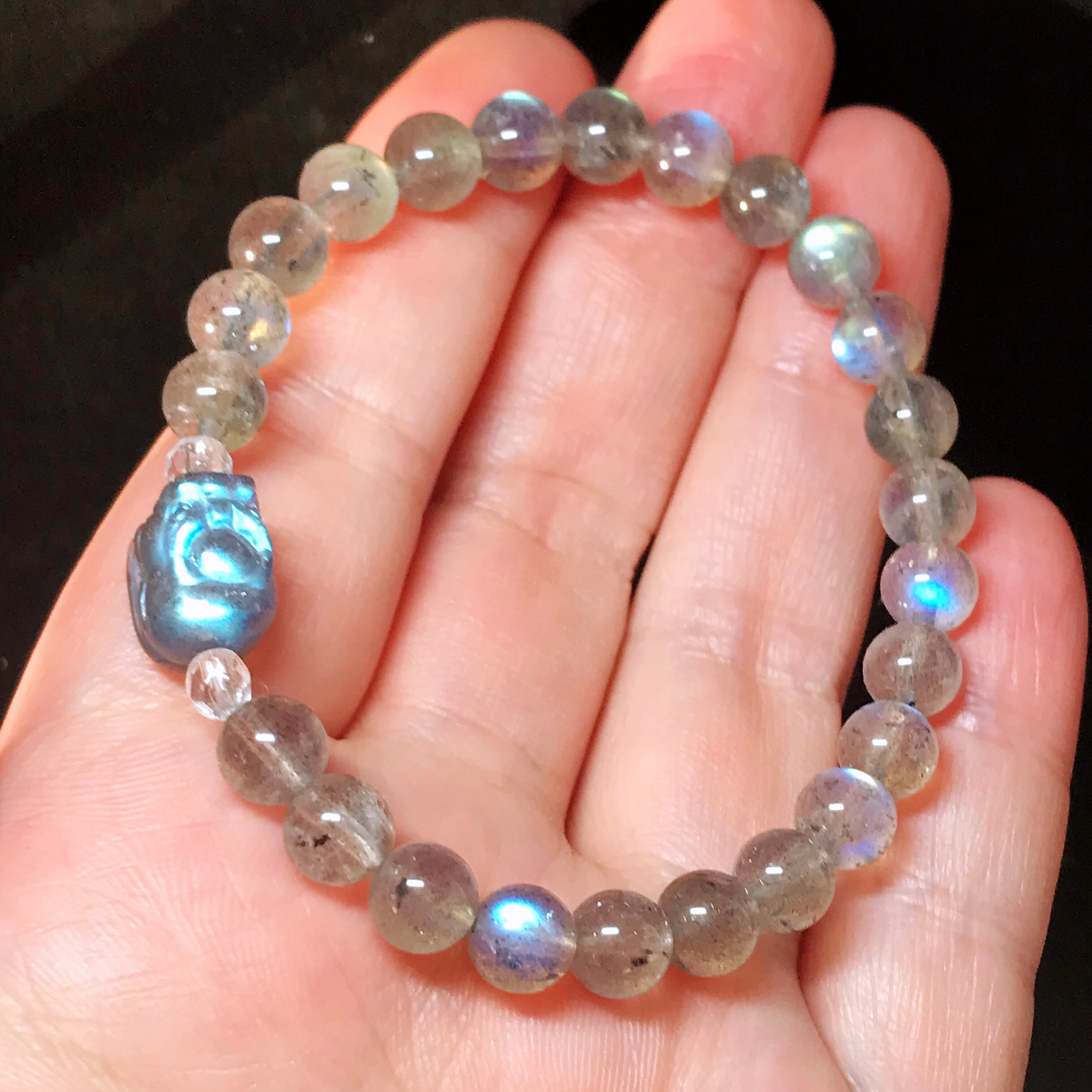 黒や灰色の中に、キラリと輝きが見える様子がとても神秘的で、宇宙をイメージさせるからだと思います。ただの例えではなく、確かにラブラドライトからは霊的な波動を強く感じます。魂に直接届くようなこの石の不思議な波動は、直感力・洞察力・創造力・予知・霊的能力を高めてるといわれています。
