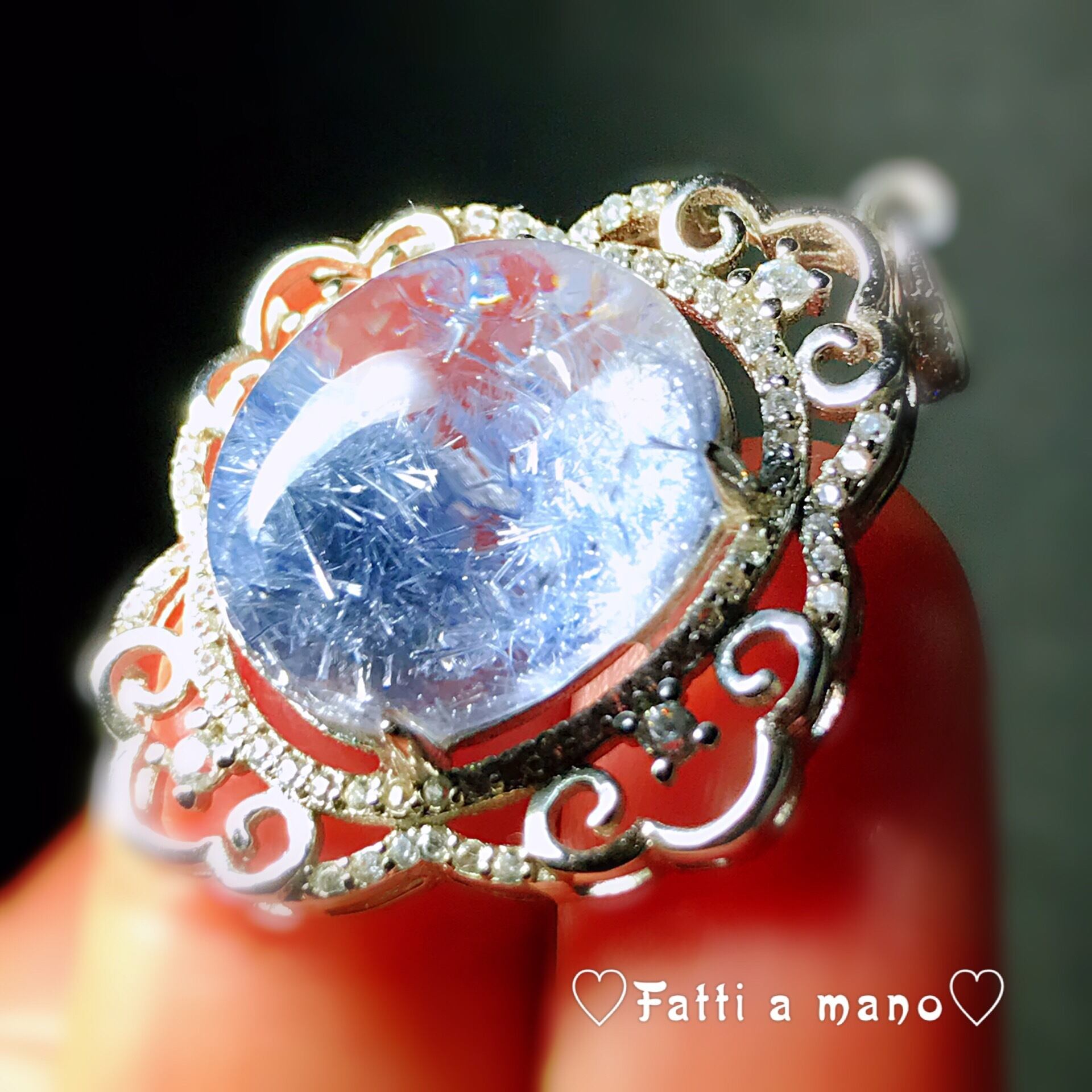金属部分はSilver925 (ロジウム加工)、小さい石は天然水晶です。