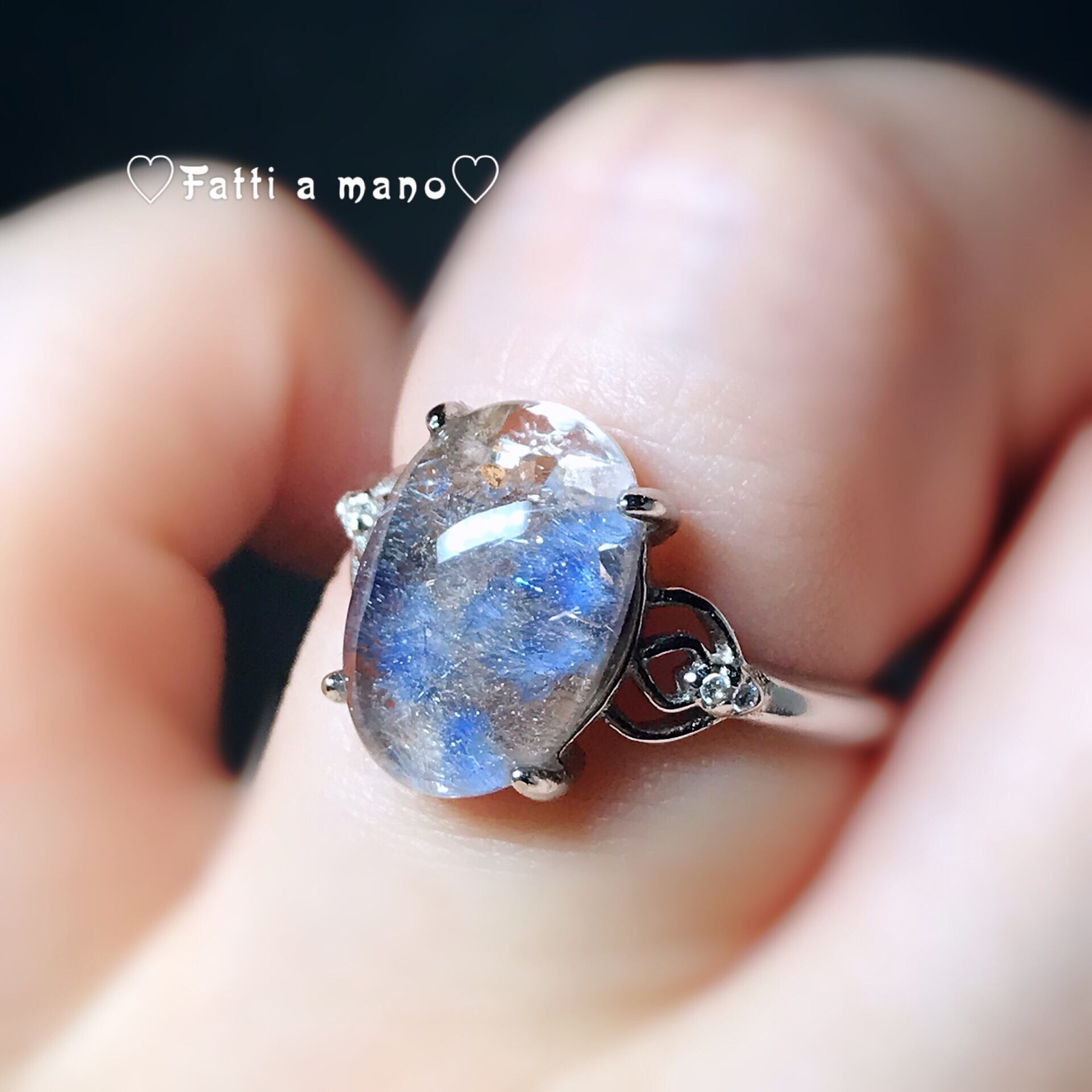 かなり入手困難 トップグレード デュモルチェライトインクォーツ リング 指輪 綺麗な氷にお花が咲いてる 貴重品