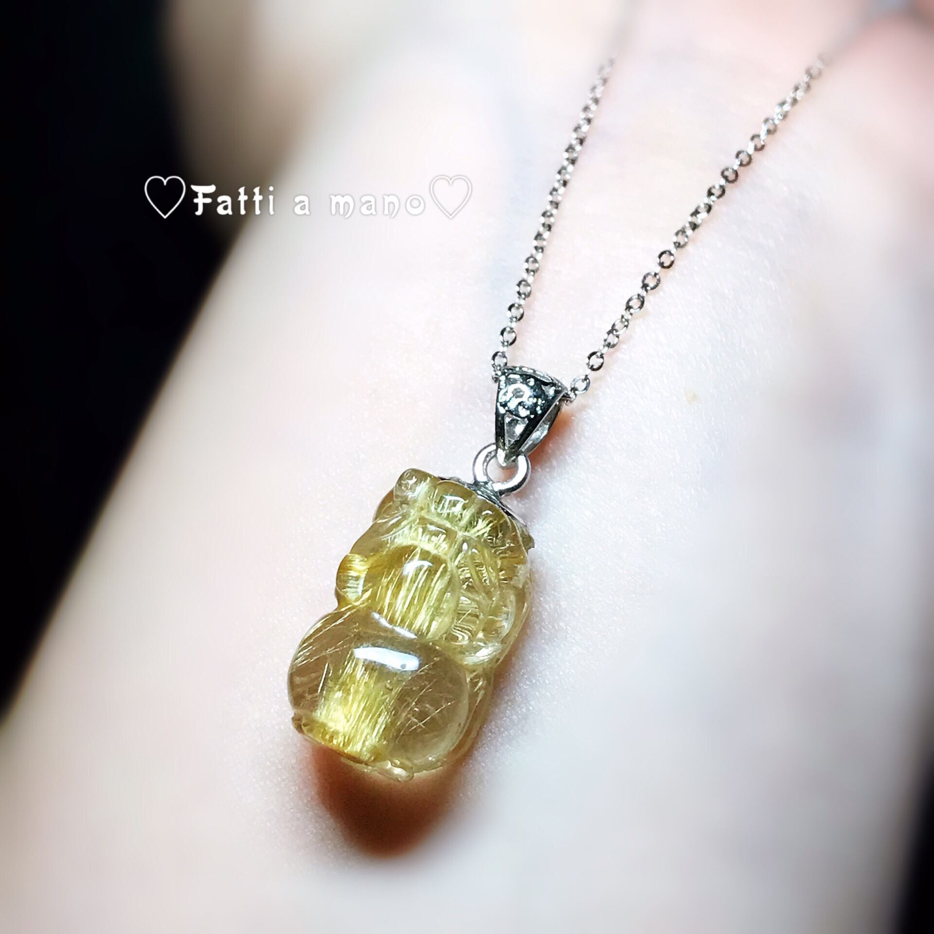 ルチル タイチンルチルクオーツ 貔貅 金 金運アップ 神獣 彫刻 ハンドメイドブレスレット 蓄財