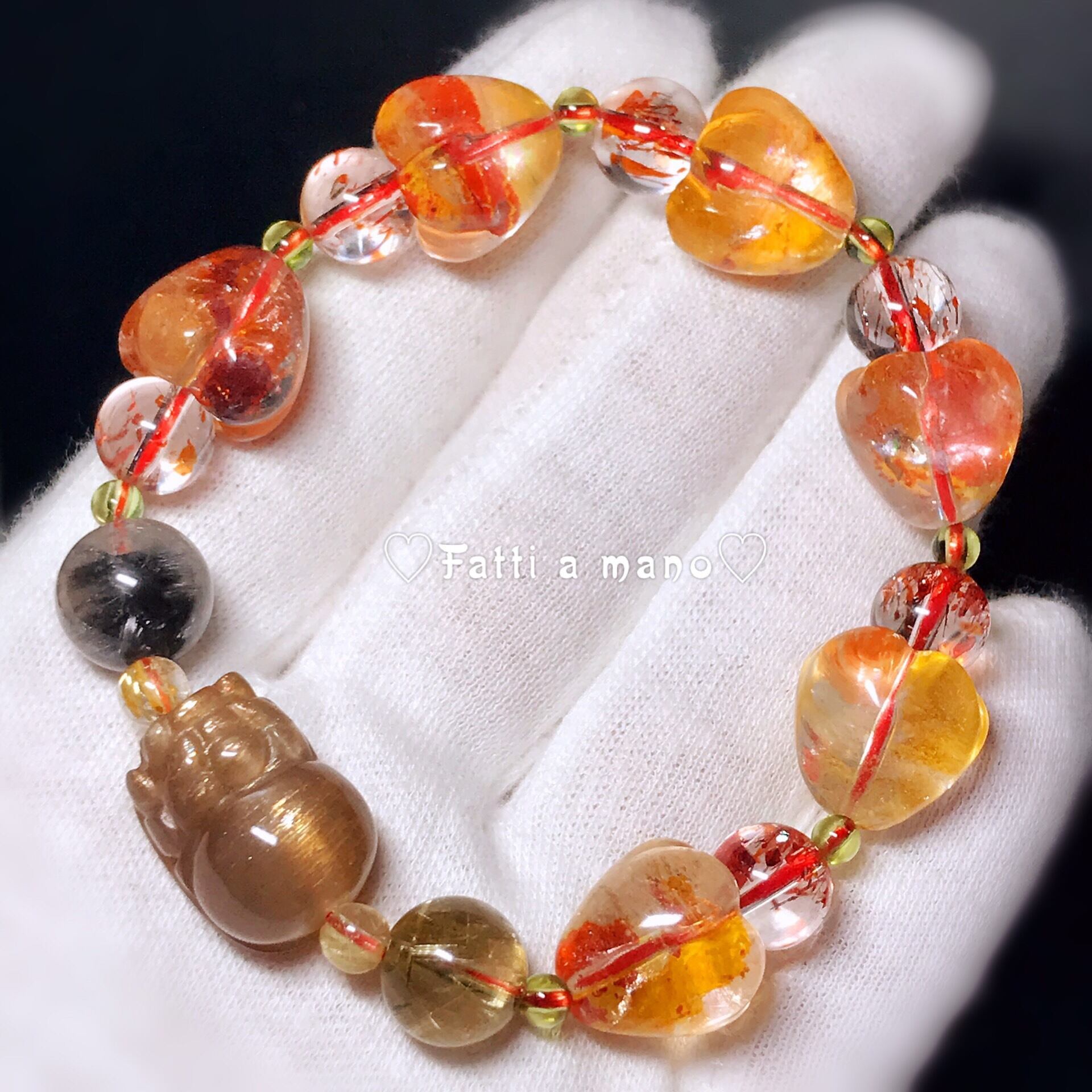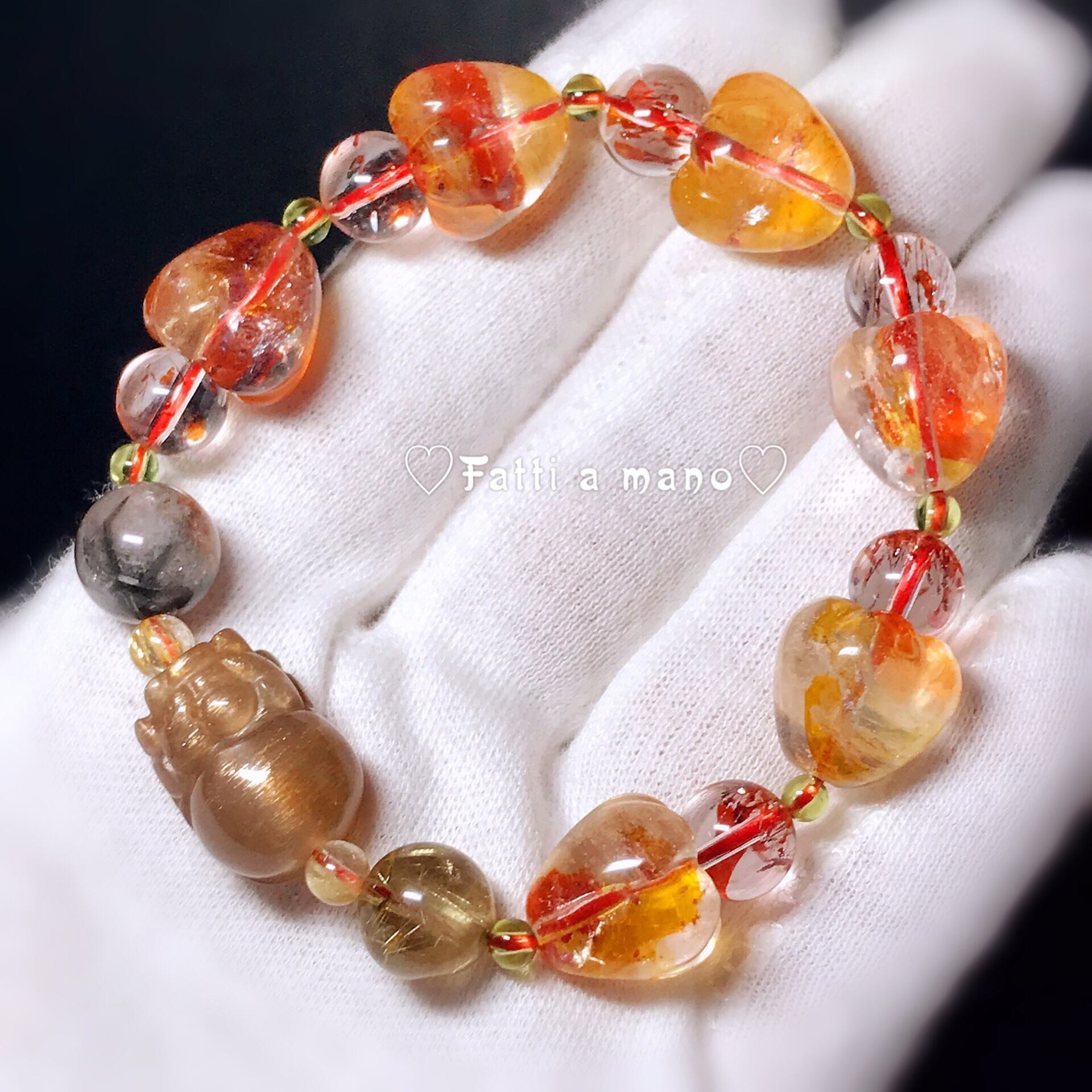 イギリス発送 トップグレード いちご型オーロラクォーツ&レピドクロサイトインクォーツ ブレスレット 一期一会 願望を実現してくれる 開光