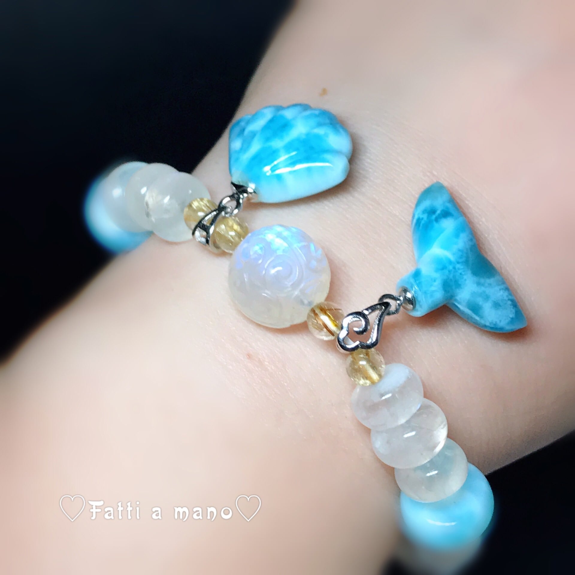 ハイクオリティ クリームムンストーン ホエールテール&シェル ラリマーブレスレット 上品 海 ハワイ 可愛い 沖縄