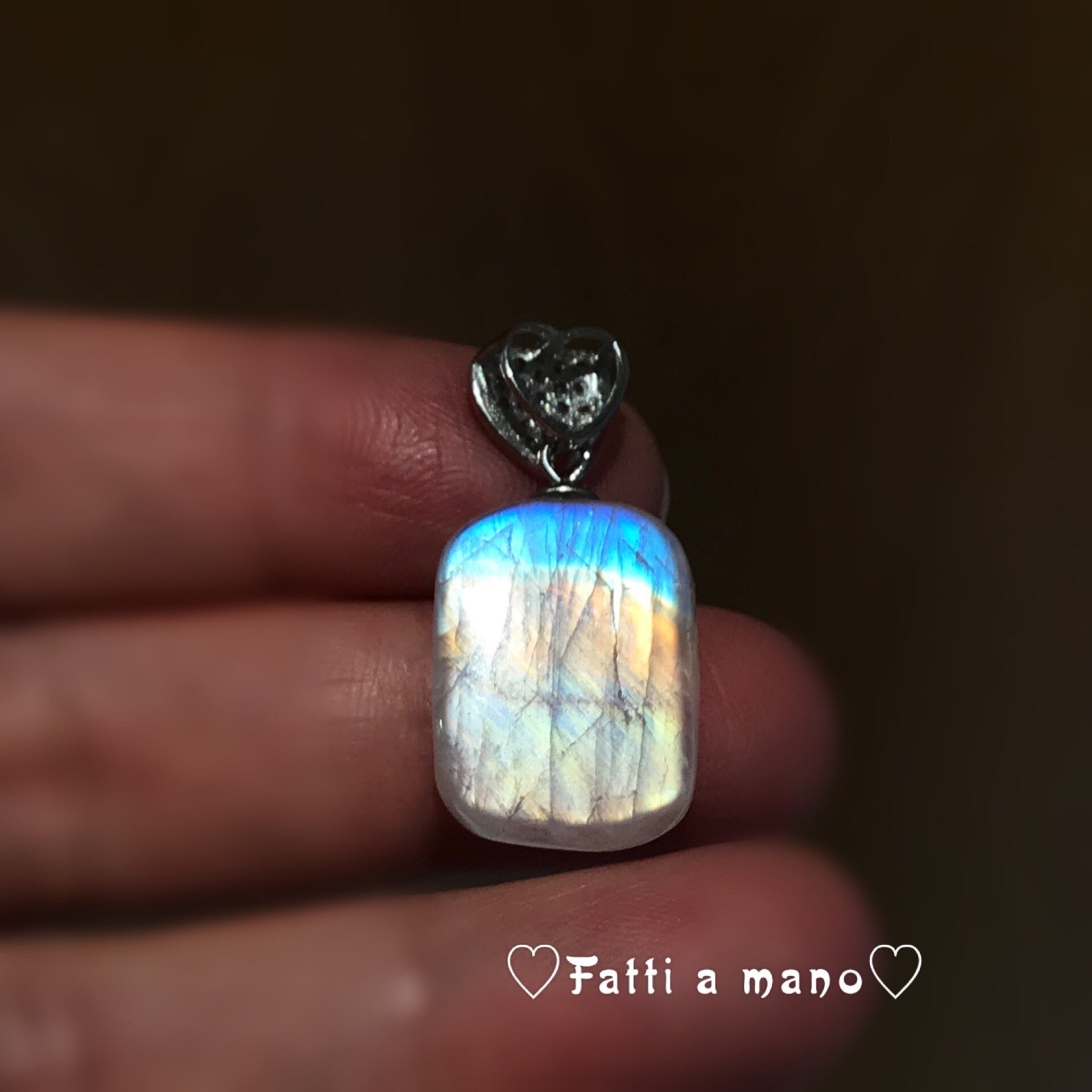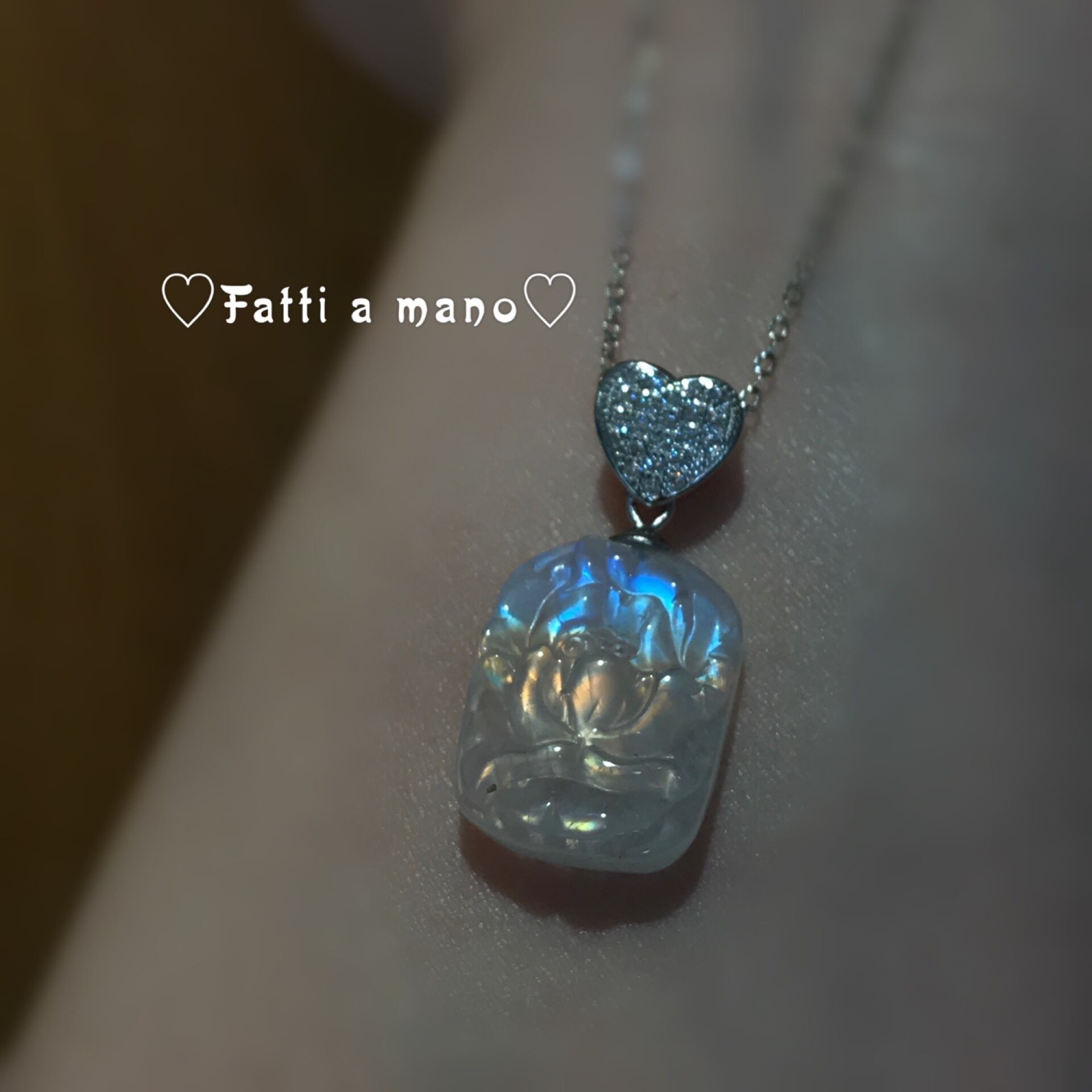 ※ムーンストーンは光源や見る角度によって発色が異なる石ですので、その旨ご了承下さい。撮影には蛍光灯の光を用いています。