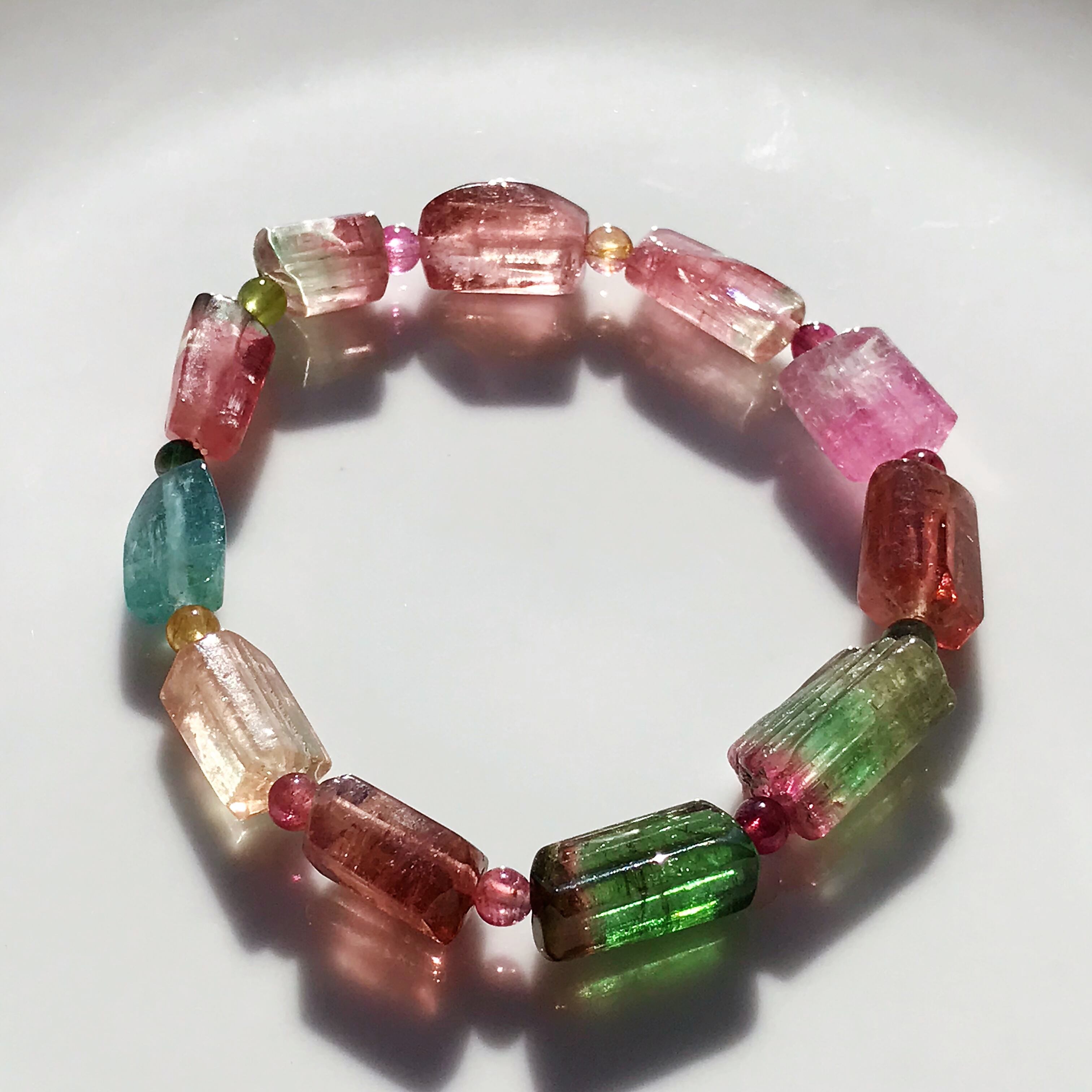 イギリス発送 トップグレード 天然ウォーターメロントルマリン原石ブレスレット マイナスイオン 入手困難 一期一会 縁起物