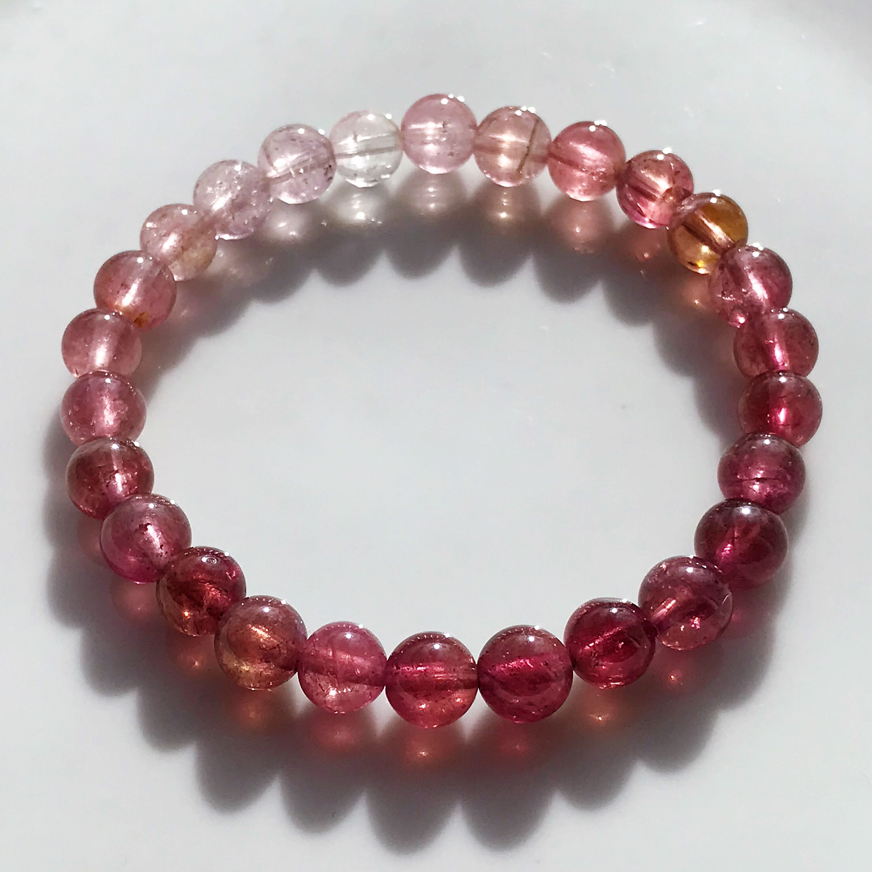 107 イギリス発送 限定品 天然ピンクトルマリンブレスレット グラデーショントルマリン マイナスイオン 一期一会