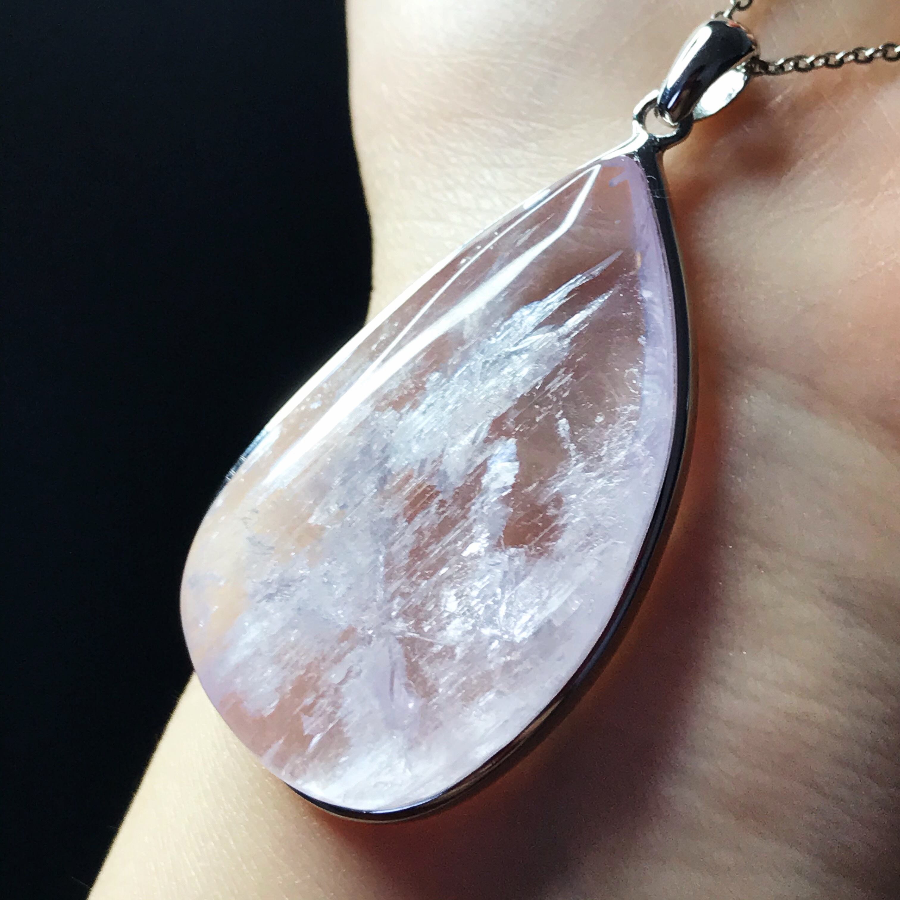 イギリス発送 限定品 Bigサイズ トップグレード クンツァイト キャッツアイ ペンダント ピンク 虹あり 豪華 希少