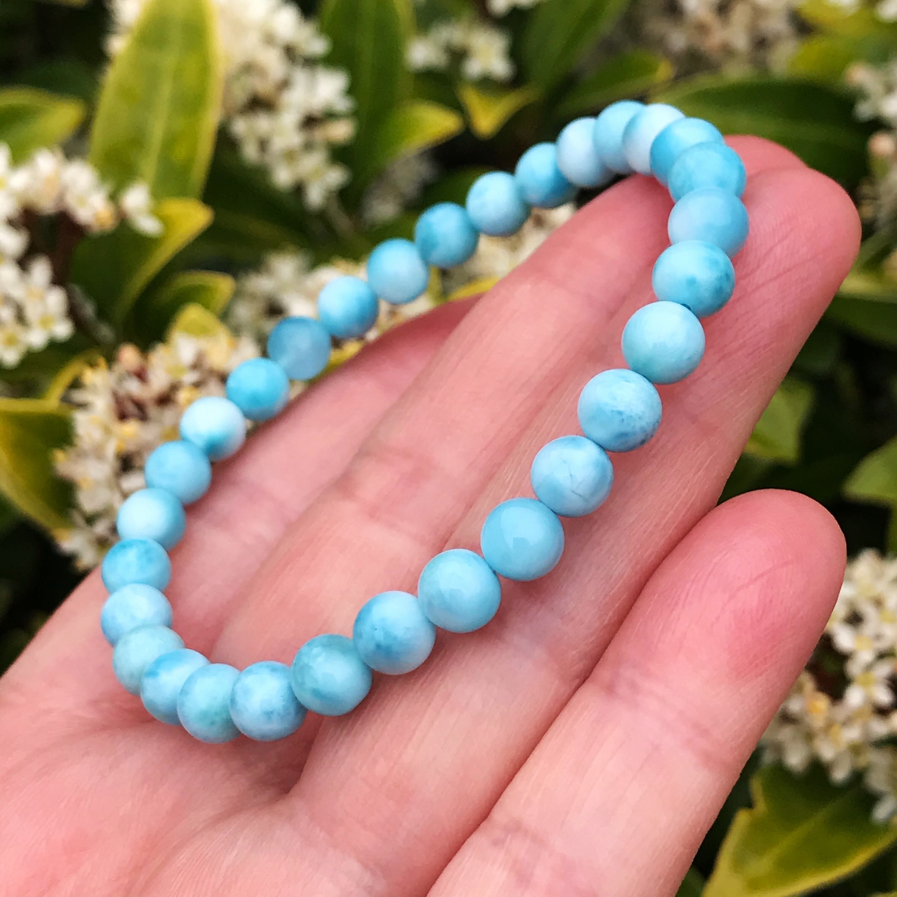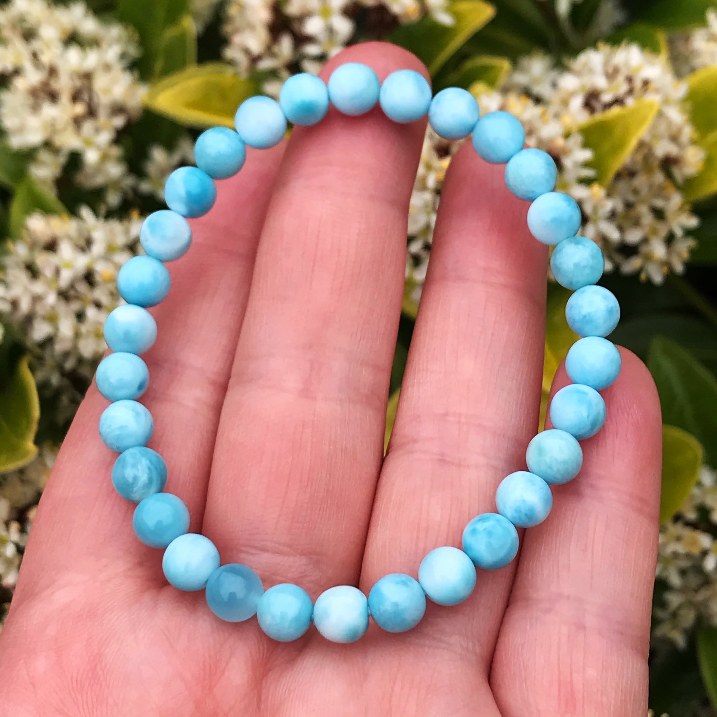 Soldイギリス発送 入手困難 ハイクオリティ ラリマーブレスレット 6mm 波模様 爽やかなブルー