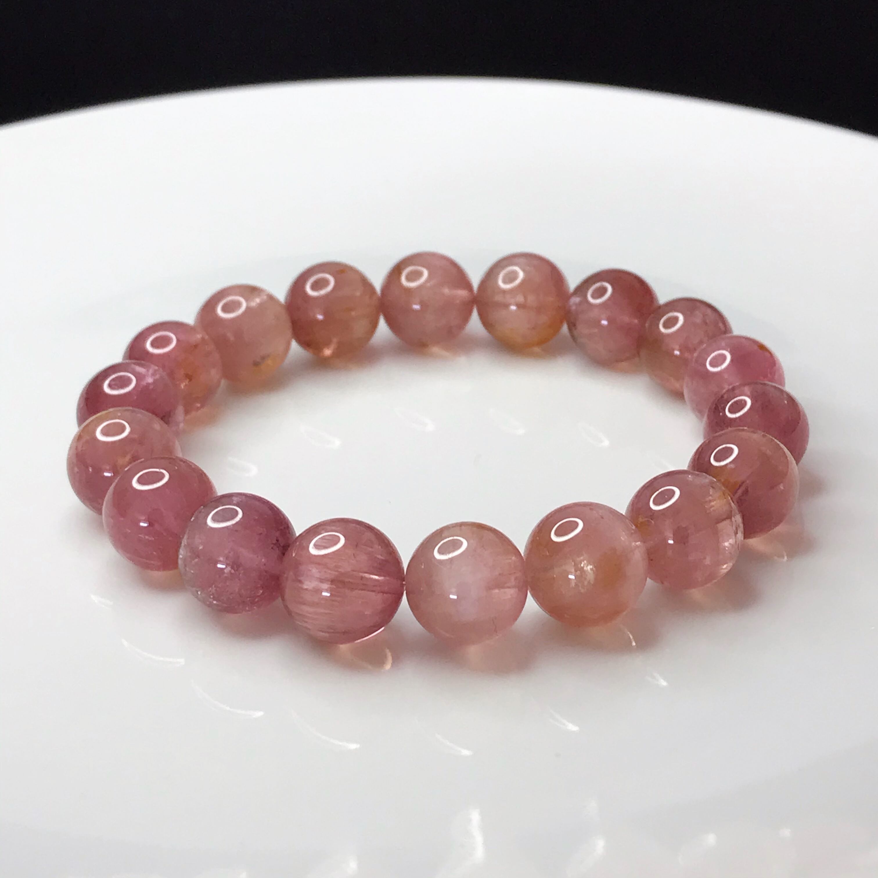 BIGサイズ丸玉 珍しい ハイクォリティ 天然ピンクトルマリンキャッツアイ ブレスレット 豪華 上品 マイナスイオン 綺麗