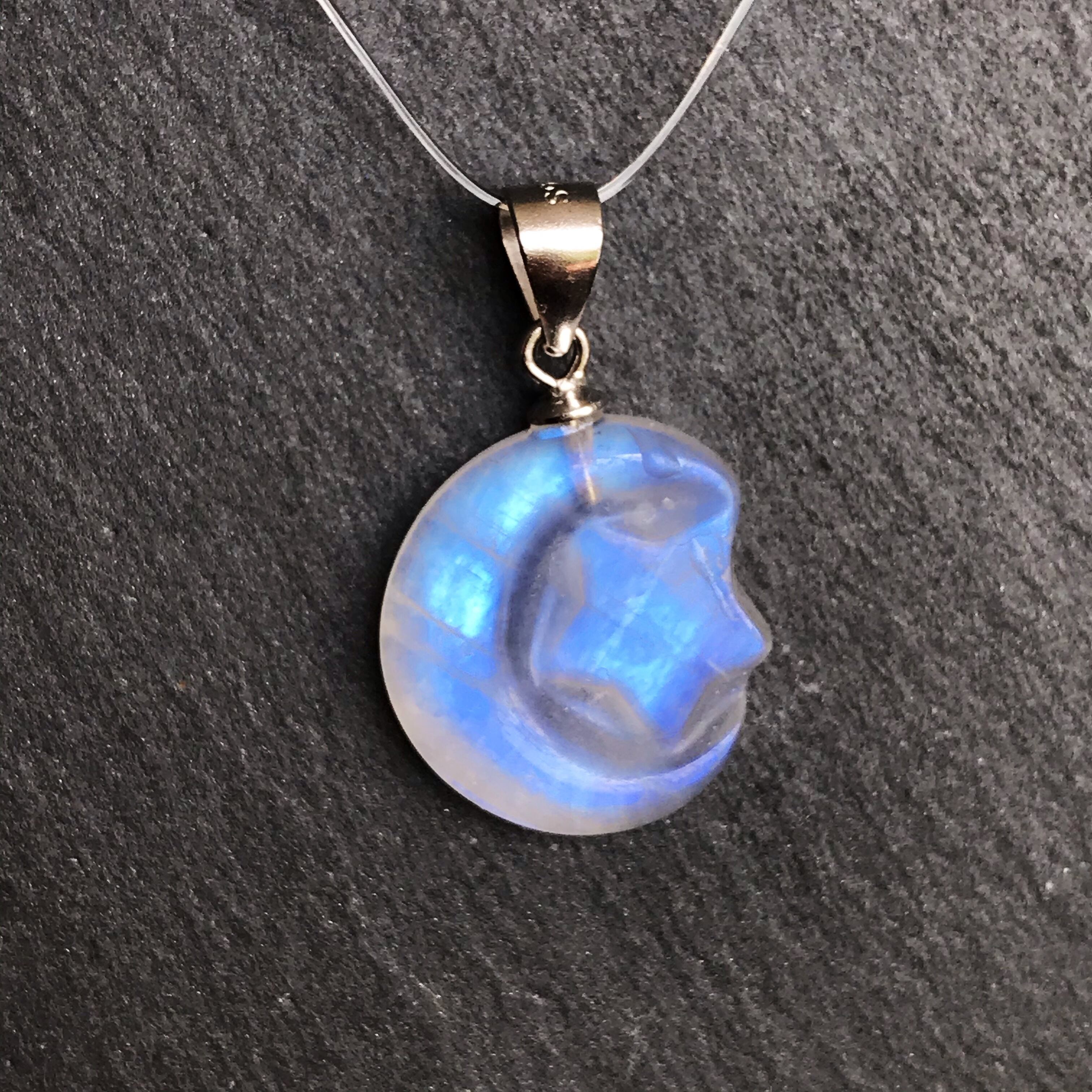 ※ムーンストーンは光源や見る角度によって発色が異なる石ですので、その旨ご了承下さい。撮影には蛍光灯の光を用いています。