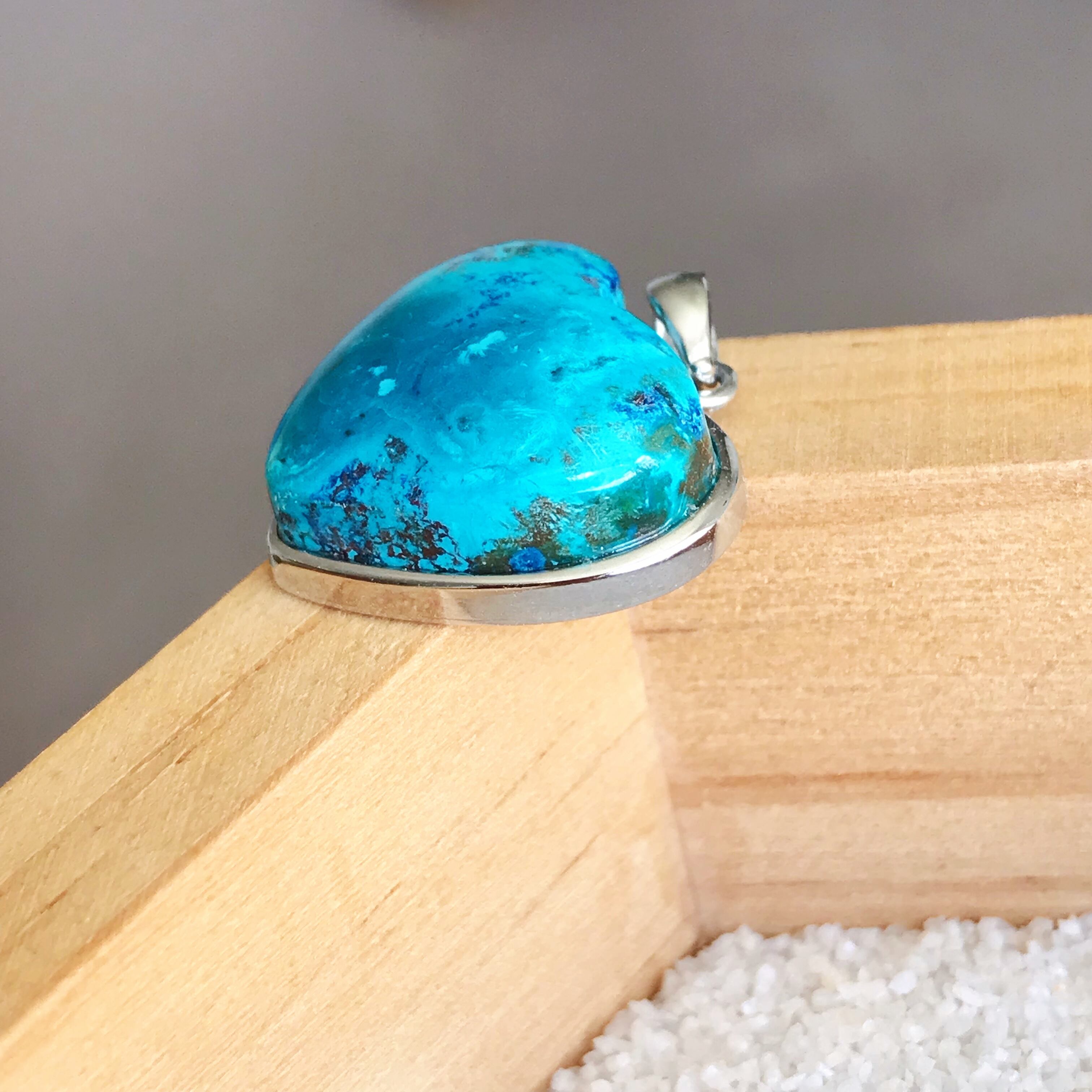 イギリス発送 トップグレード クリソコラ ハートペンダント ヒーリング 天然石 御守り