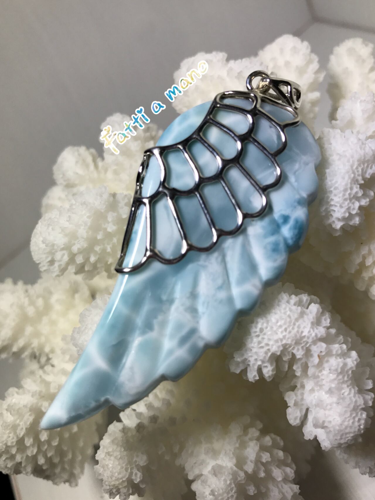 大変入手困難Big6.3cm♡天使の翼♡ハイクオリティドミニカラリマーペンダント 綺麗な海模様 大変入手困難な子 結婚式 Silver925