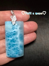 素材:ドミニカ共和国直輸入 100%天然ラリマー(約43.8*22*10mm) 金属部分はsilver925、小さい石は天然水晶です。